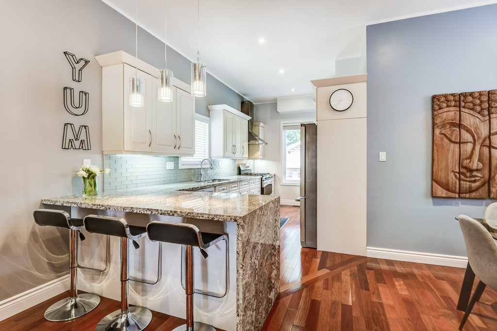 Welcome to 69 Sixteenth Street in New Toronto. This Beautiful Custom Renovated Home in South Etobicoke is Built with Attention to Detail in Every Room with Upgraded Finishes. 10’ Ceiling Height & Hardwood Floor Throughout. Open Concept Kitchen. Quartz Waterfall Breakfast Bar & Stainless Steel Appliances. Pot Lights Throughout. Heated Flooring in Ensuite & Upper Bathroom.